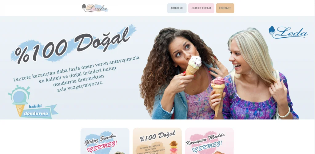 Questo sito Web ha un design molto interessante e unico. Oltre al fatto che il loro web design è unico, sono orgogliosi di avere gusti di gelato unici. Il menu completo è visibile dalla homepage. Con molte immagini di gelato dall'aspetto delizioso attraverso il sito web. Nella parte inferiore della home page, presentano un modulo di contatto, che semplifica la connessione con l'azienda.