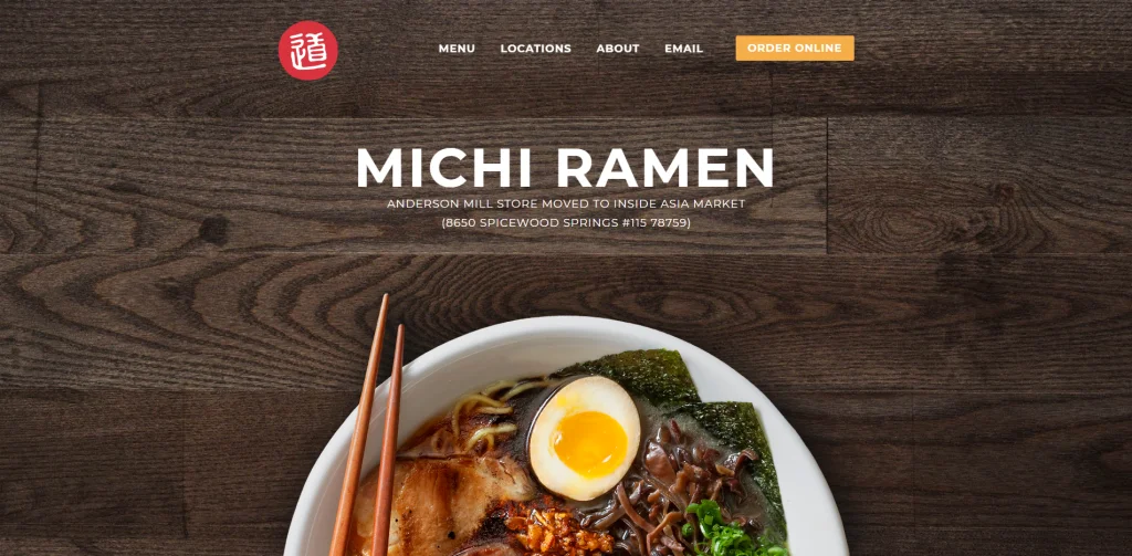 Il sito web di Michi Ramen è pulito e attraente. Fin dall'inizio, condividono il condimento che viene offerto da aggiungere a una ciotola di ramen. Lo schema dei colori è il giallo, che si abbina bene con l'immagine con la ciotola del ramen. che viene utilizzato per le icone e per evidenziare le informazioni. Nella scheda "Informazioni", presentano la loro storia insieme a una descrizione più approfondita delle ciotole di ramen. I numeri di telefono, gli indirizzi e i collegamenti ai social media sono tutti visibili nella parte inferiore della pagina.