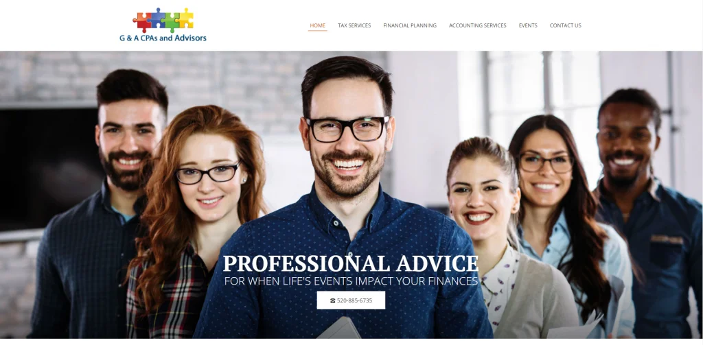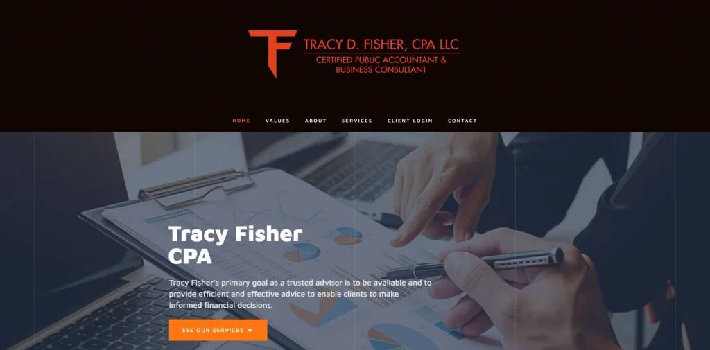 Questo sito Web contabile ha una combinazione di colori e un design accattivanti. Badger CPA utilizza le icone per mostrare i servizi che offre. Le testimonianze dei clienti felici si trovano su un dispositivo di scorrimento nella home page, che è facile da leggere mentre scorrono. Fanno un ottimo lavoro spiegando diversi aspetti del loro sito Web sulla home page. Inoltre, hanno una barra dei menu nella parte superiore della pagina con tutti i collegamenti che mantengono organizzate le loro informazioni.