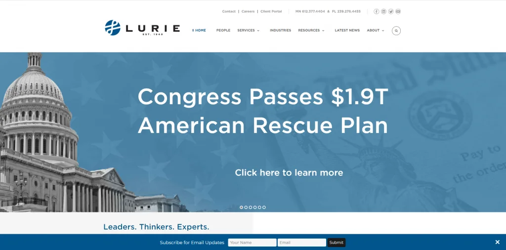 Questo sito Web ha uno slider introduttivo molto informativo. Ognuno ha un link per saperne di più su un'altra pagina. C'è una sezione che introduce ogni membro del team con un paragrafo dettagliato per ciascuno. Ciò consente ai potenziali clienti di raggiungere l'azienda e conoscere il team prima di fissare un appuntamento. Lurie offre molte risorse utili che possono aiutare molte persone della zona.