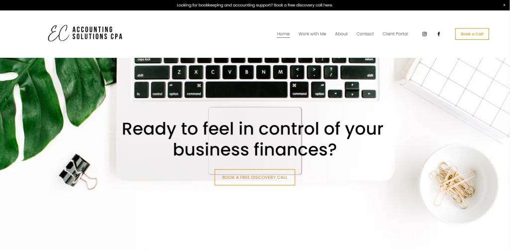 EC Accounting Solutions è un sito Web pulito e minimalista, che aiuta i servizi e il prodotto a distinguersi. I colori unici rendono il sito interessante. C'è un'intestazione adesiva che consente al nome del marchio di essere visibile ovunque sul sito web. Gli altri contenuti sembrano ordinati e puliti con il contenuto al centro della pagina e molto spazio bianco intorno. Inoltre, il sito Web del contabile presenta alcune opzioni per connettersi con questa azienda come il modulo di contatto e i collegamenti ai social media.