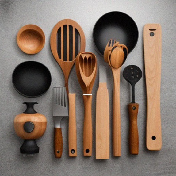 Quando gli ho chiesto di generare un'immagine per “ Set di utensili da cucina con design di ispirazione vintage ”, il risultato è stato apprezzabile.