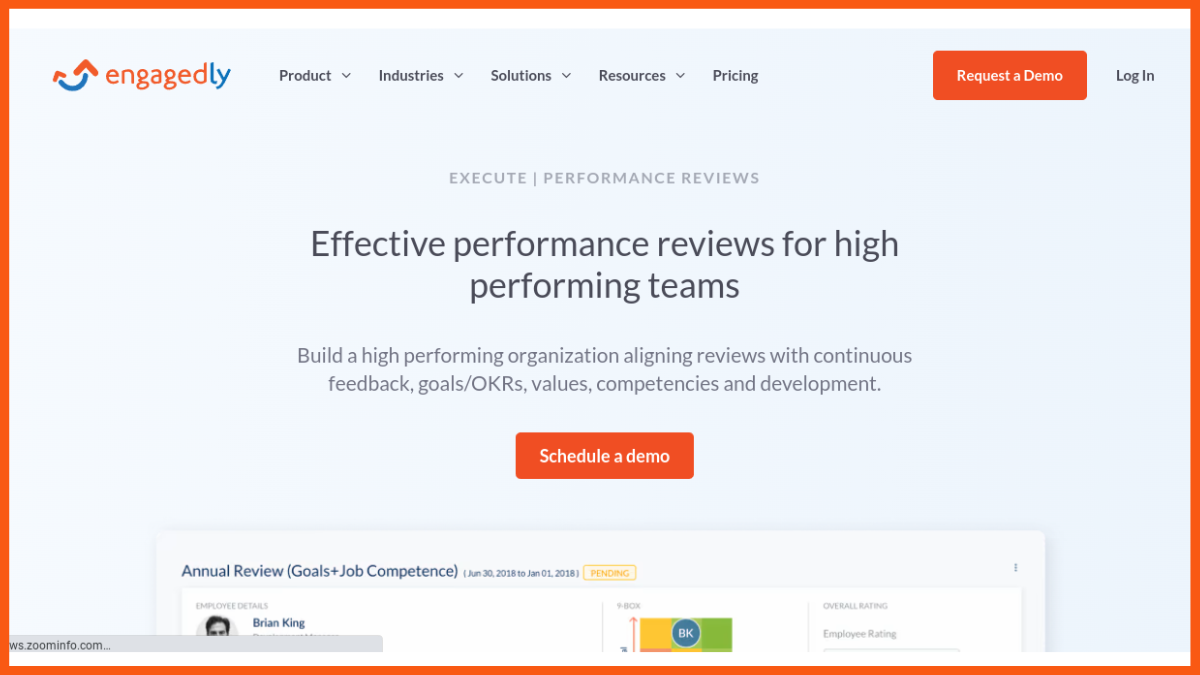 Engagedly è un noto e affidabile software di revisione delle prestazioni che crede nel coinvolgimento del dipendente con obiettivi e traguardi chiari. Se un dipendente è consapevole di come il proprio contributo sta influenzando la crescita di un'azienda, tende a lavorare con maggiore efficienza. Questo software consente ai manager di formare i propri dipendenti sulle loro carenze con una valutazione a 360 gradi e un feedback continuo.