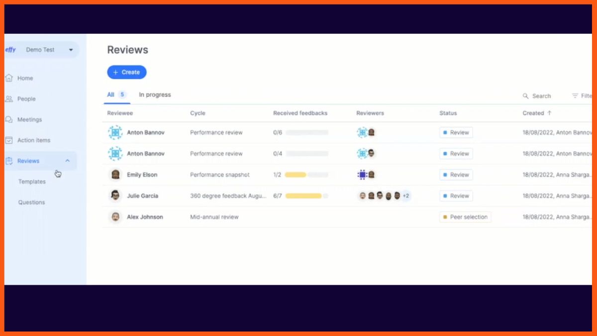 Effy è un software di gestione delle prestazioni a tutto tondo che viene fornito con un'interfaccia utente avanzata e interattiva che devi considerare. Coinvolgi i tuoi dipendenti, potenzia il loro talento e ottieni la fidelizzazione dei dipendenti monitorando continuamente e fornendo feedback preziosi ai dipendenti. Effy aiuta a creare revisioni di autovalutazione per identificare punti di forza, debolezze e abilità.