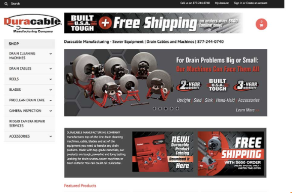 Quando Duracable si è rivolta a 1Digital Agency per un restyling del suo sito BigCommerce, una delle prime iniziative è stata lo sviluppo della storia del marchio. Le macchine per la pulizia degli scarichi, i cavi e le lame non sono prodotti appariscenti o esperti da vendere online. Il vecchio sito web di Duracable lo rendeva dolorosamente ovvio evidenziando gli incentivi all'acquisto, invece di evidenziare la storia che rende Duracable diverso dai concorrenti.