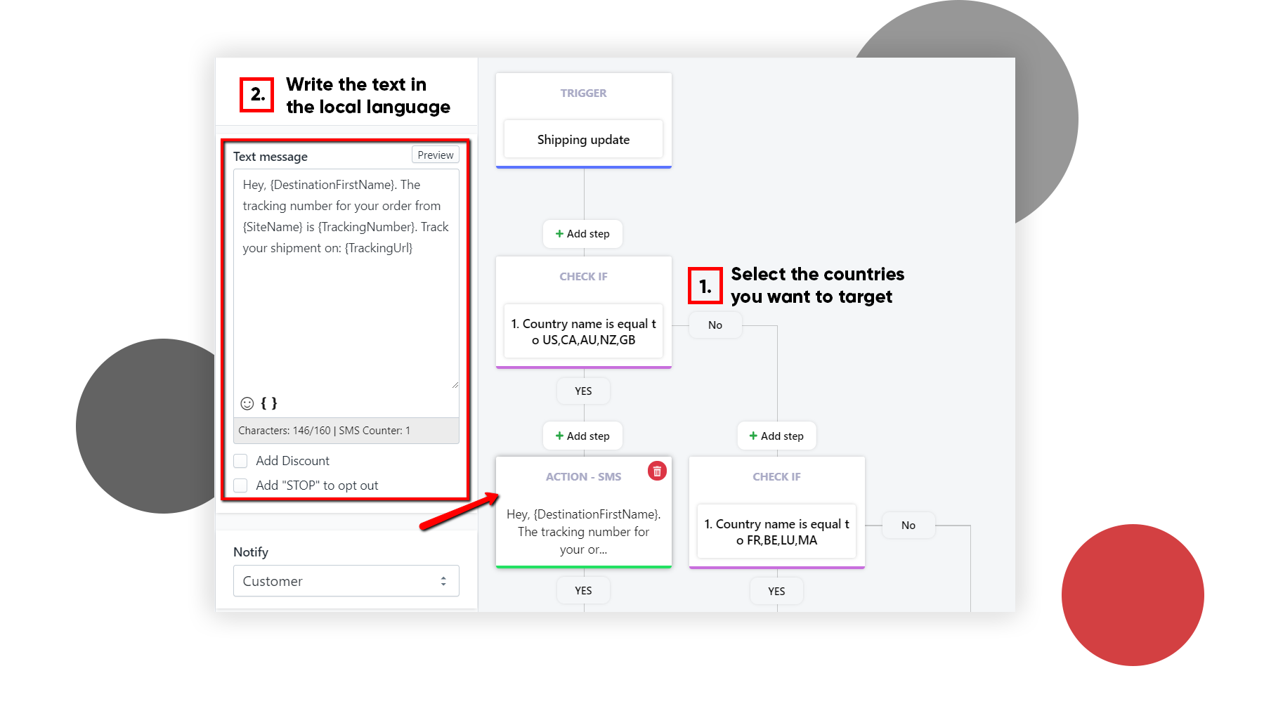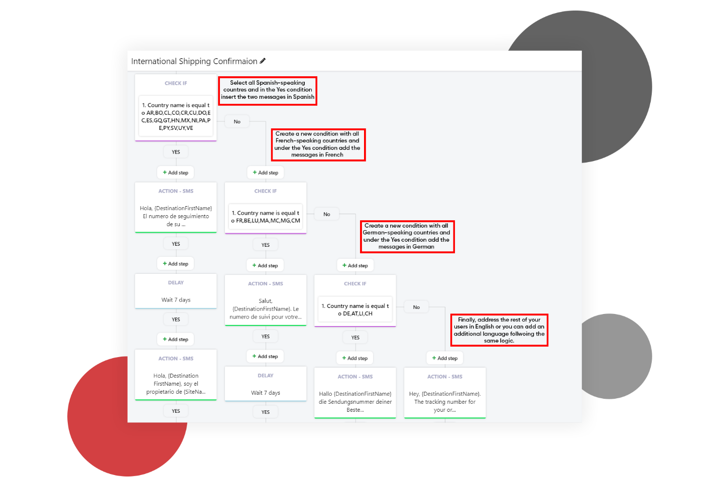 I flussi sono molto simili alle automazioni degli SMS ma consentono di creare relazioni più complesse tra di loro. Ecco perché sono lo strumento perfetto per creare un messaggio di conferma della spedizione multilingua automatizzato.