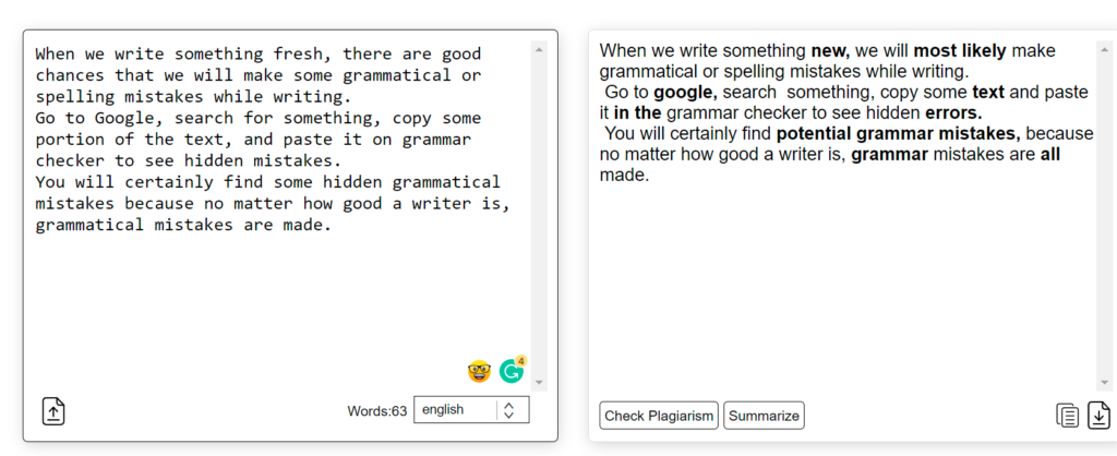 Quando scriviamo qualcosa di nuovo, ci sono buone probabilità che commettiamo errori grammaticali o di ortografia durante la scrittura. Vai su Google, cerca qualcosa, copia una parte del testo e incollalo sul correttore grammaticale per vedere gli errori nascosti. Troverai sicuramente alcuni errori grammaticali nascosti perché non importa quanto sia bravo uno scrittore, gli errori grammaticali vengono commessi.