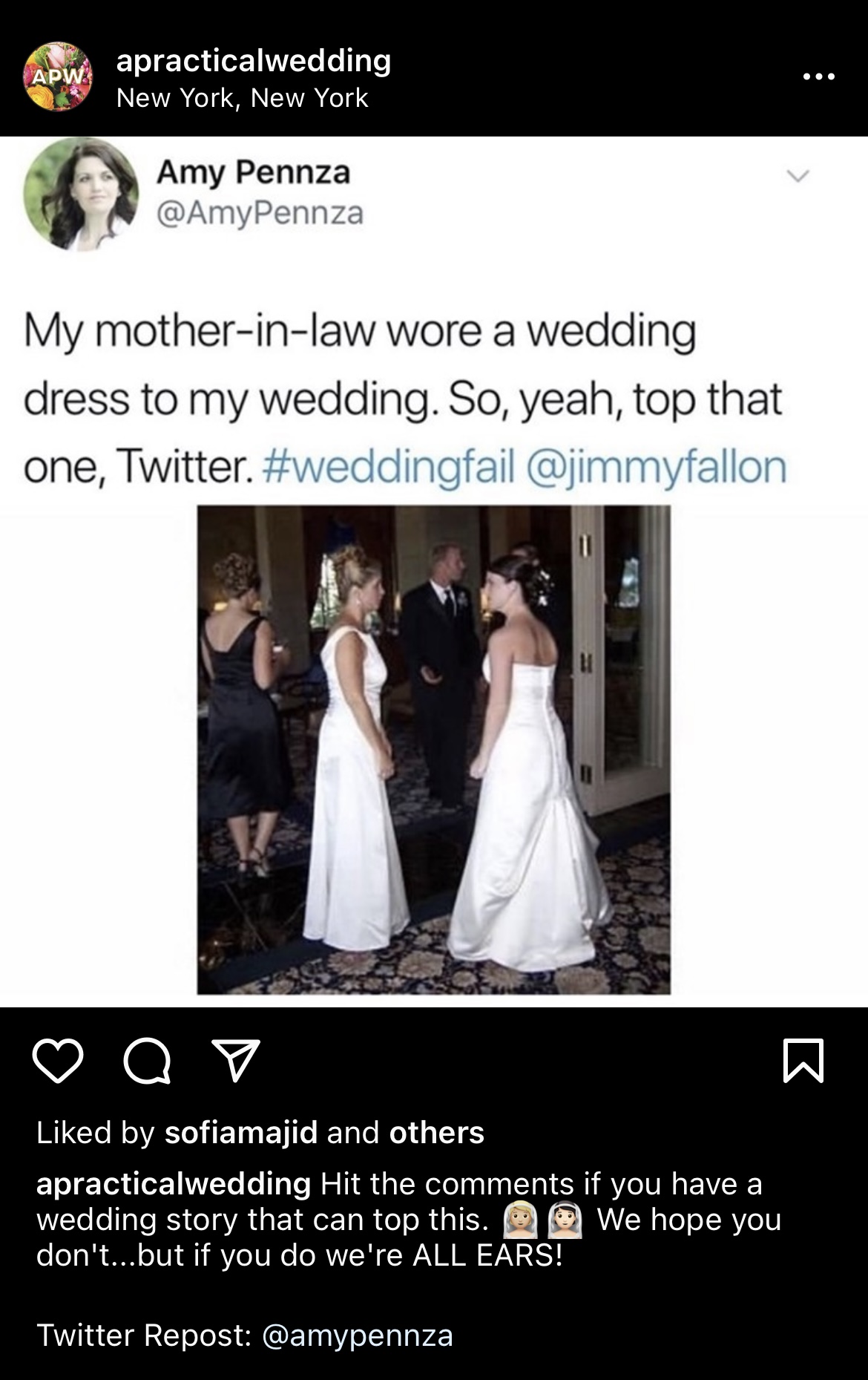 La pagina Instagram @apraticalwedding, ad esempio, condivide di tanto in tanto i meme sulla loro pagina e di solito sono i post con il maggior numero di commenti.