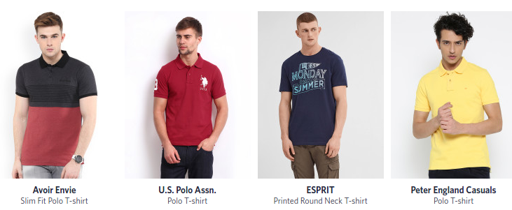 Nel primo caso, vediamo immagini con diversi modelli maschili che assumono pose diverse. Indossano pantaloncini a T di diverse marche, vestibilità, stili del collo e tipi di grafica. Sembra che quelle foto siano state fatte in tempi diversi, in ambienti diversi. Tutto ciò rende questa pagina di categoria piuttosto incoerente.