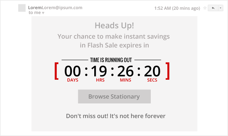 Ad esempio, puoi impostare il tuo limite di tempo per alcune ore o alcuni giorni. Puoi anche provare a utilizzare un conto alla rovescia per aumentare ulteriormente il senso di urgenza.