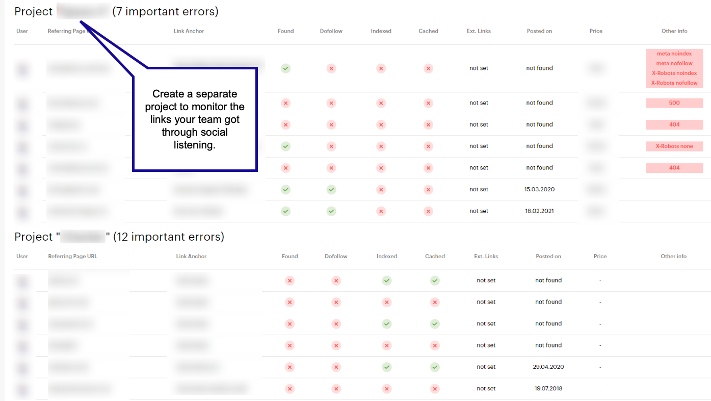 E Link Checker ti aiuterà a organizzare quei link in modo da poter vedere chiaramente quali link sono stati acquisiti attraverso i social media e assegnare loro parametri importanti (come link nofollow / nofollow , stato di indicizzazione, reindirizzamenti , ecc.)