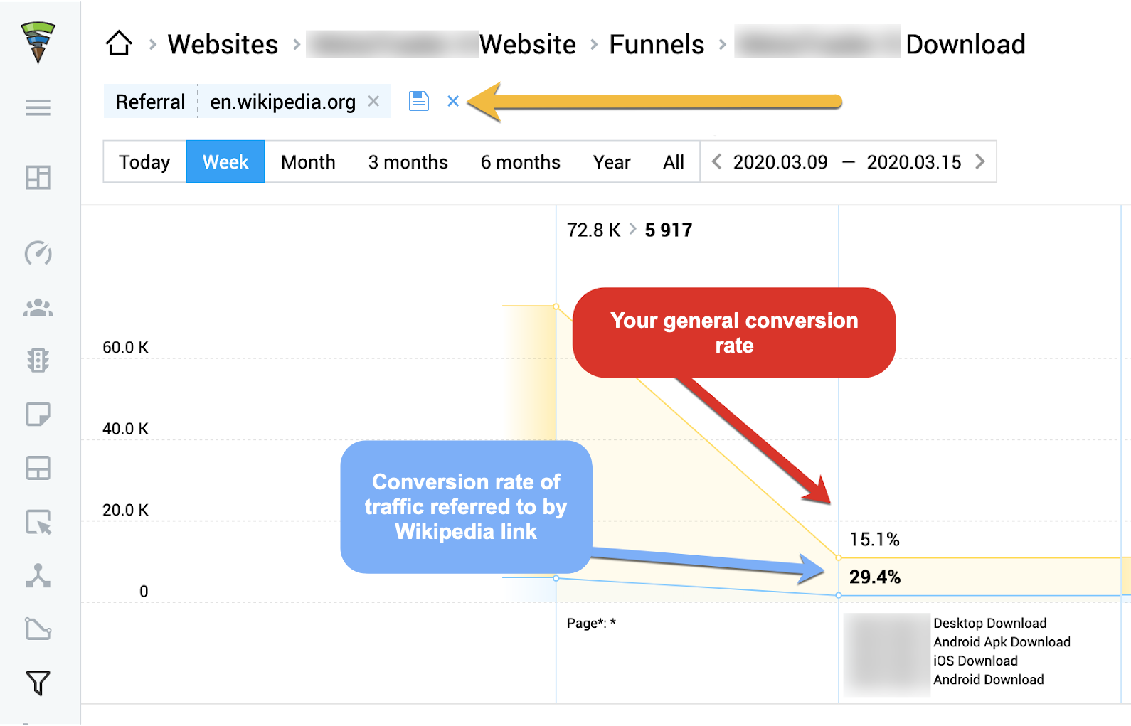 Inoltre, Finteza ti aiuterà a valutare i tuoi link che guidano il traffico e ad analizzare se quei clic generano lead:
