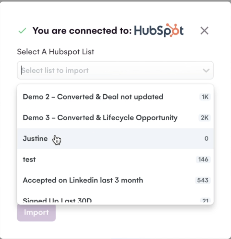 Con questa integrazione potrai importare i tuoi contatti da HubSpot a La Growth Machine, scegliendo quale lista (fissa o dinamica) importare per contattarli via email o su LinkedIn, in un solo clic.