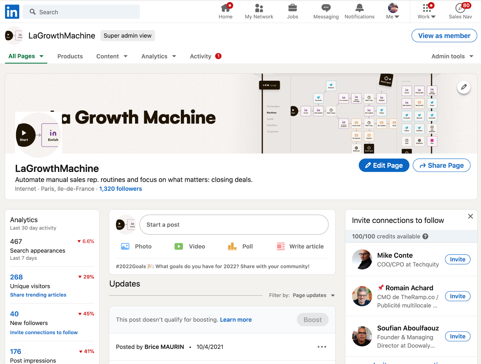 - LaGrowthMachine — Il nostro strumento è creato per aiutarti a concludere più affari. Ad esempio, puoi importare i tuoi follower su LinkedIn (o quelli della tua azienda) ogni settimana per inviare loro messaggi personalizzati e avviare una conversazione con loro.