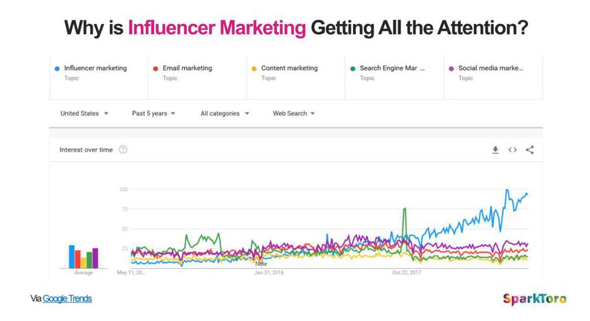Tra tutte le potenziali fonti in cui può avere luogo l'influencer marketing — podcast, giornali, white paper, guerriglia marketing, blog, Twitter, YouTube, ricerche web, Facebook, recensioni dei consumatori, Instagram, ecc. — spiccano solo YouTube e Instagram. Ma se fai un controllo della realtà e guardi le statistiche sul comportamento online dei clienti, vedrai che l'attenzione e l'influenza si verificano ovunque: