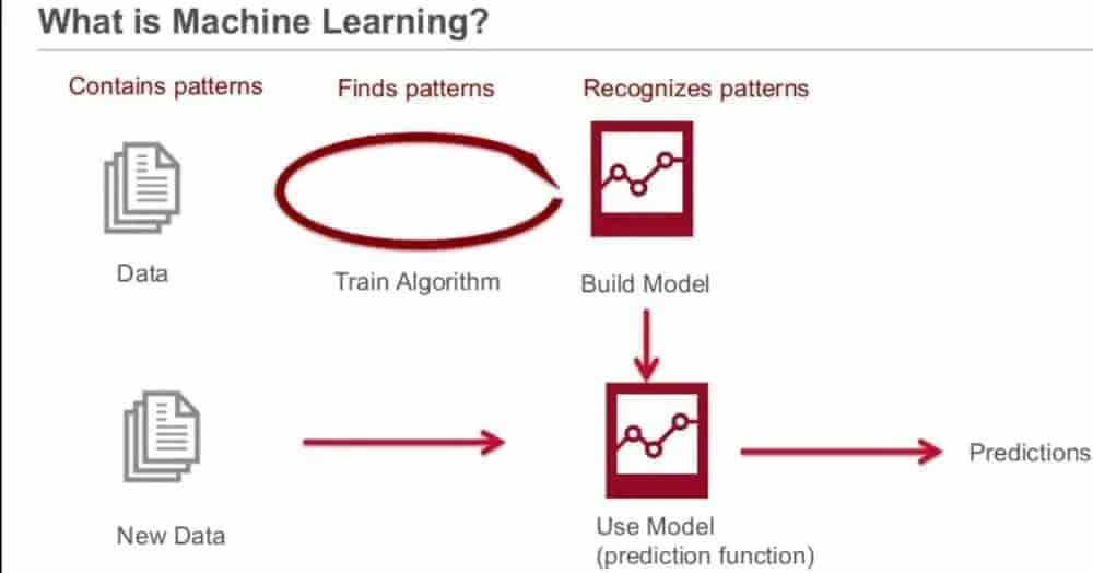 Il processo di "addestramento" comporta la presentazione del modello con il maggior numero di dati possibile. Quindi discerne i modelli e le relazioni tra i dati. In definitiva, il modello può applicare ciò che ha "appreso" a qualsiasi nuovo set di dati che gli viene presentato. È quindi in grado di prevedere possibili azioni future sulla base di modelli passati.