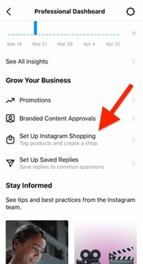 - In "Informazioni aziendali pubbliche", seleziona "Imposta Shopping su Instagram"