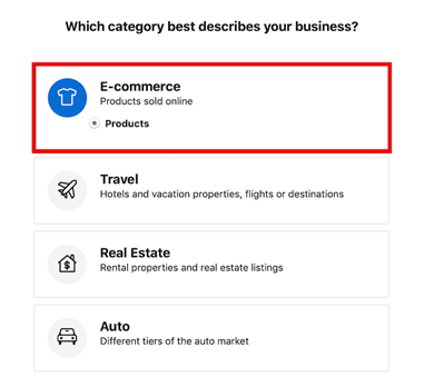 - Clicca su “Crea Catalogo” e scegli “E-commerce”