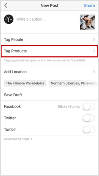 Dopo aver impostato il tuo catalogo Facebook e abilitato lo shopping su Instagram, puoi iniziare a taggare i tuoi prodotti nei tuoi post. Per creare post acquistabili, segui questi passaggi:
