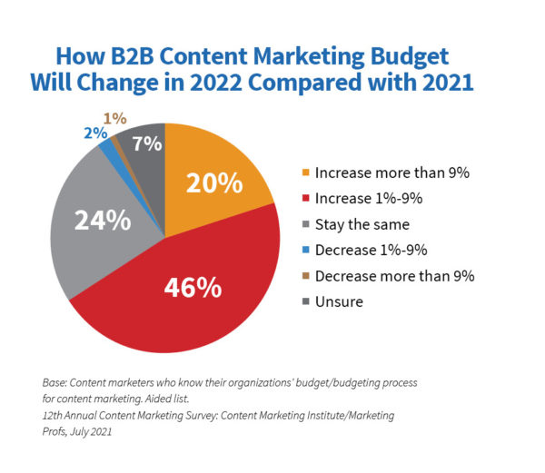 Il valore è chiaro in questa statistica dal rapporto annuale sul marketing dei contenuti B2B del Content Marketing Institute che mostra B2B il 66% dei marchi prevede di aumentare la spesa per il marketing dei contenuti.