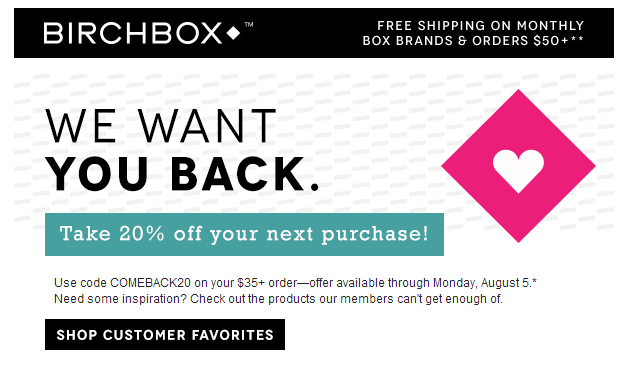 Diverse piattaforme tecnologiche di posta elettronica ti consentono di perfezionare la messaggistica e le offerte inviate per convincere in modo più efficace le persone a tornare.