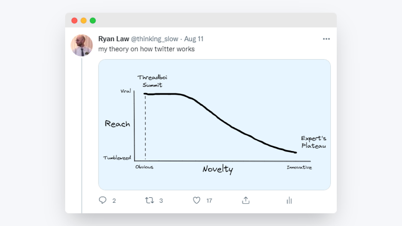 Questo ha senso: "diventare virale" richiede che un tweet abbia un fascino di vasta portata e i tweetstorm sui libri da leggere o gli strumenti gratuiti da utilizzare generalmente hanno un pubblico quasi universale. L'algoritmo premia questi tweet... e mentre molte persone pensano che questo riduca l'esperienza di utilizzo di Twitter, possiamo usarli a nostro vantaggio.