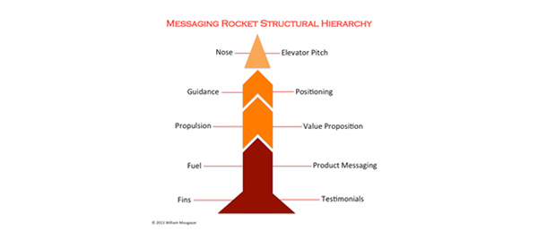メッセージング階層テンプレートの1つの例(以下)は、「メッセージングロケット構造階層」と呼ばれるWilliamMougayarによって作成されました。