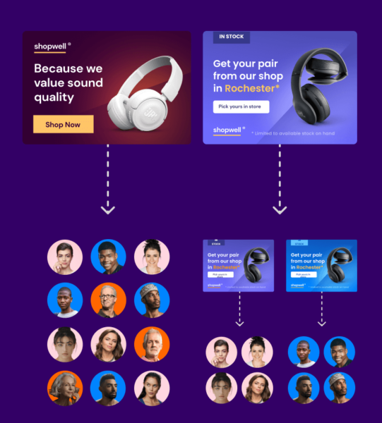 これを行う最も簡単な方法は、創造的な自動化に目を向けることです。 バージョニング ツールとデータフィードの広告デザインにより物事が簡素化され、キャンペーン全体のパーソナライズされたアセットを即座に生成できます。
