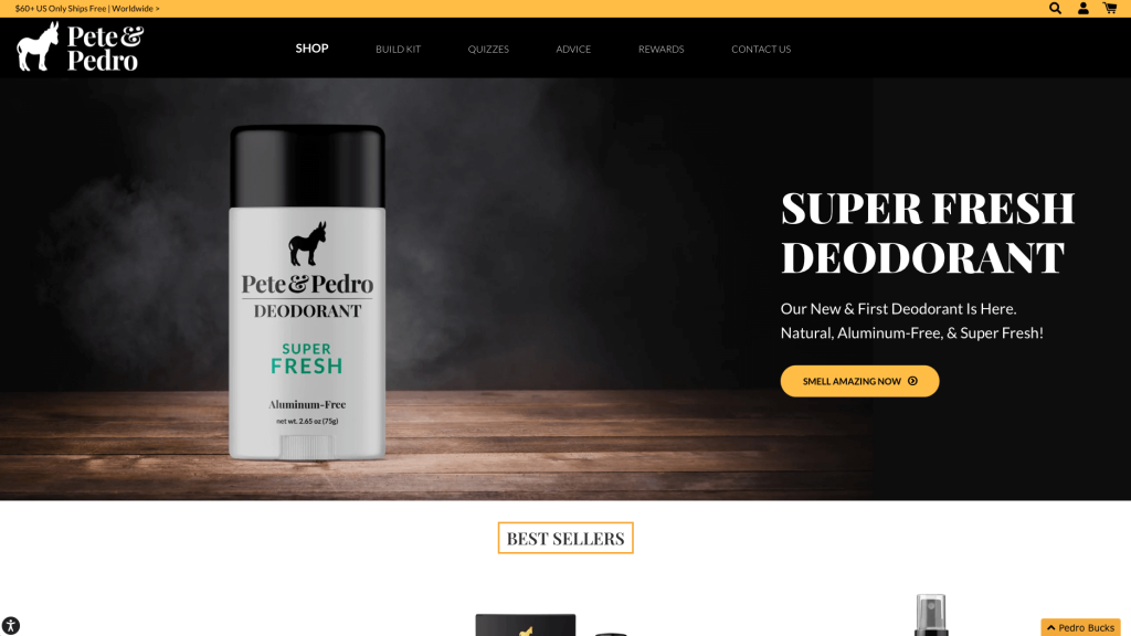 Pete & Pedro は、ヘアおよびボディ用品のオンライン ウー コマース Web サイトです。 デオドラントからシャンプーまで、ニーズをしっかりカバー。 Pete & Pedro は、e コマース サイトを使用して製品を販売する男性用ヘアケア会社です。 このウェブサイトは、白黒の配色でモダンなデザインになっています。 製品は、写真と説明付きのグリッド レイアウトで表示されます。 また、顧客が製品や会社について詳しく知ることができるブログとビデオのセクションもあります。 フッターには、モバイル アプリをダウンロードするための行動を促すボタンがあります。