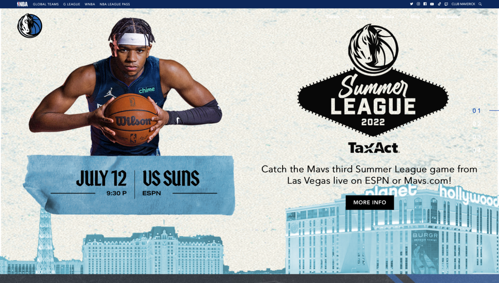 Mavericks の Web サイトはクリーンで分かりやすく、目に優しいダークとホワイトの配色になっています。 ウェブサイトはよく整理されており、ナビゲートしやすく、チームのソーシャル メディア アカウントへの明確なリンクがあります。 ウェブサイトの写真は高品質でプロフェッショナルであり、ビデオはよくできています. グラフィックは美しく、ユーザーフレンドリーで、訪問者が利用できるチームに関する多くの情報がシームレスに流れています. Mavericks Web サイトは、適切に設計された WordPress サイトの優れた例です。
