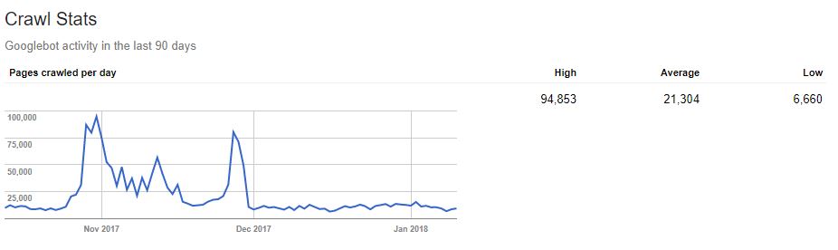 - 1日あたりにクロールされたページ:過去90日間にクロールされたページの数。 インデックス作成と同様に、ページをクロールできるようにすることで、サイトにユーザーに関連する情報があることをGoogleが確認できます。 クロール予算を改善する方法を詳しく調べるために、私の同僚のマークがここにある記事を書いています。