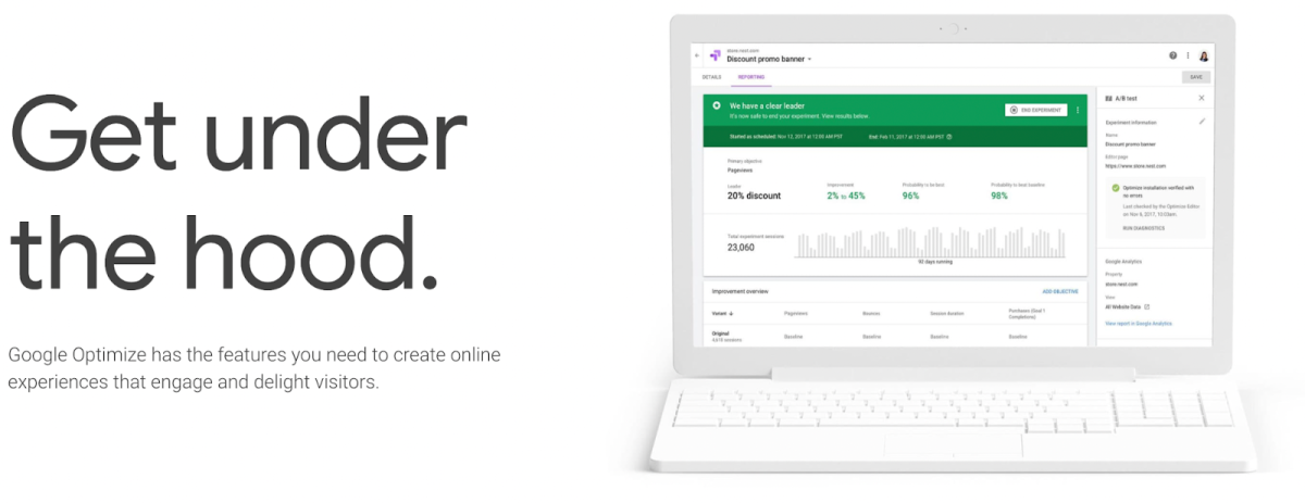 Google オプティマイズは、最小限のコーディング知識を持つユーザーや、A/B テスト用に HTML や Javascript 要素を微調整できる上級ユーザーに適しています。
