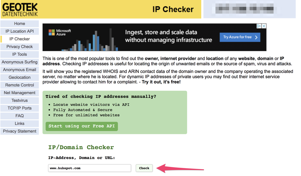 次のIPチェッカーを使用して、ドメインごとにIPアドレスを検索することもできます。