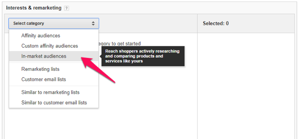 次に、[カテゴリの選択]ドロップダウンから[市場のオーディエンス]を選択します。