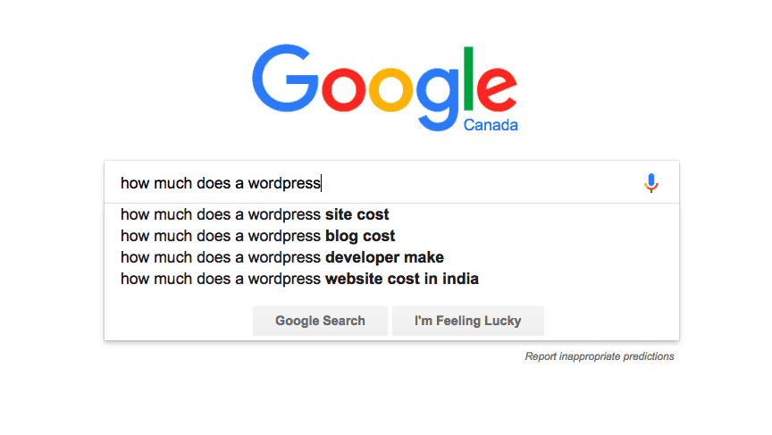 私の特にお気に入りは、Google autosuggest を使用することです。 Google では、次のような典型的な質問の開始単語から始めます。