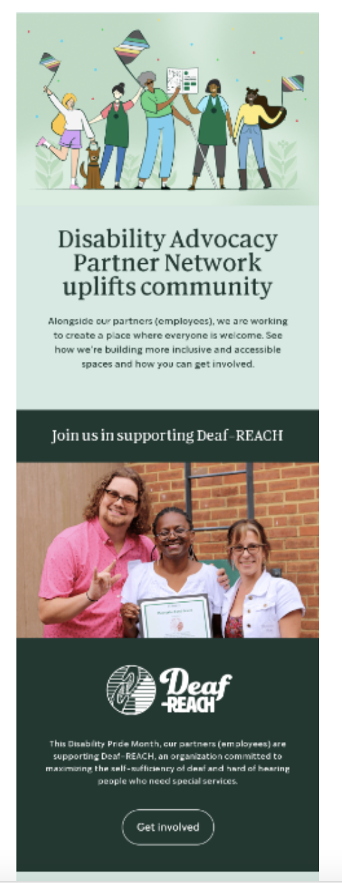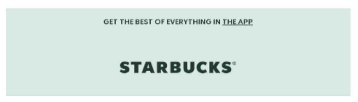 最初のスキャンにブランド認知を含めたいため、ここにロゴを含めます。 ただし、このスペースは、小規模なセールのバナーや重要なアップデートを含めるのに最適です。 スターバックスはこのスペースを利用して読者をモバイル アプリに誘導します。