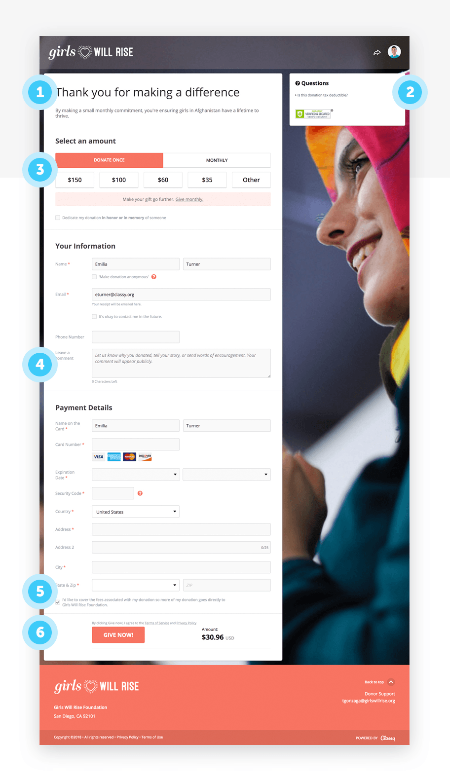 以下の画像と説明テキストは、Classyクラウドファンディングキャンペーンを段階的に説明しているため、必要な基盤をカバーしているだけでなく、キャンペーンが最大限の可能性を発揮できるように支援していることを確認できます。