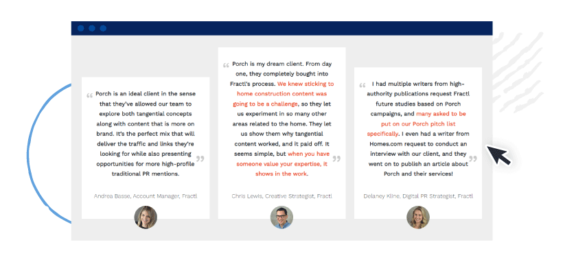 このケース スタディは、Fractl が 1 年で Porch.com の 931 の固有ドメインからリンクを獲得した方法と呼ばれています。 大胆なグラフィックとすっきりとしたデザインの力を示す好例です。 クライアントの見積もりがいかにきれいに見えるかに注目してください。