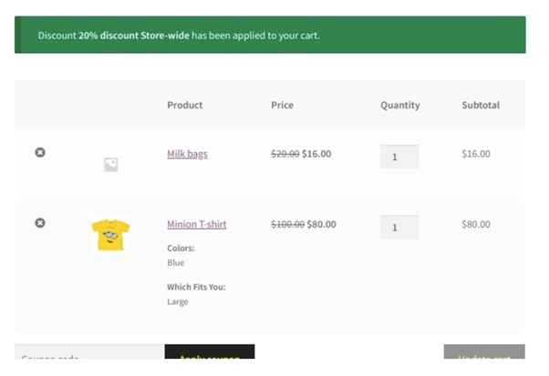 これは、今日のWooCommerceストアのすべての製品に20%の割引を設定したことを意味します。