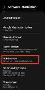クリックすると、多くのオプションが目の前に表示されます。ここでは、ソフトウェア情報内のビルド番号のオプションが表示されます。 このビルド番号のオプションでは、すばやく 6、7 回タップする必要があります。 これを行うと、開発者モードが有効になります。