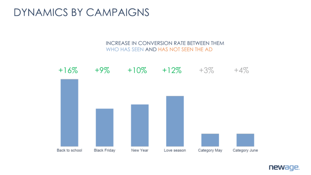 その他の広告を除くすべてのトラフィック ソースで増加が観察され、全体として、メディア広告を見た個人の効果は 12% 向上しました。 他のメディア キャンペーンの効果については、「メディア キャンペーンはパフォーマンス ツールにどのように影響するのか?」というタイトルの記事をご覧ください。 プロムのケーススタディ。」