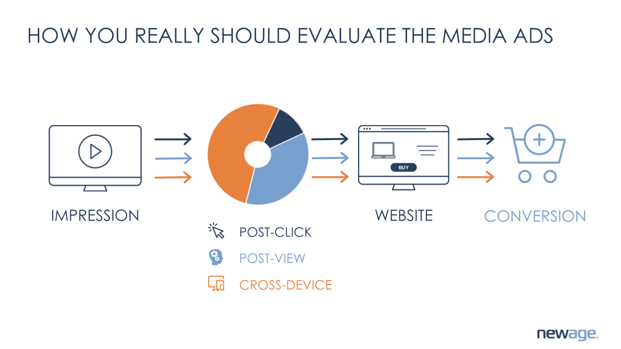 ブランドに対するメディア広告の影響を評価するための代理店、ニューエイジ。 ポストビューおよびクロスデバイスコンバージョンに関するデータを調査する総合分析を利用します。
