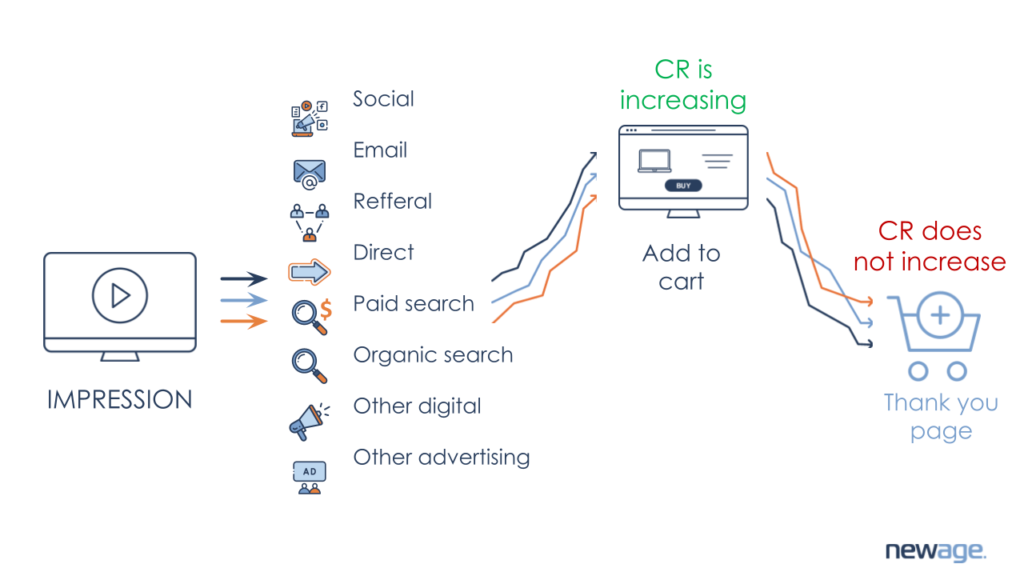 メディア広告の主な目的は、興味のあるユーザーを Web サイトに誘導し、閲覧してカートに商品を追加するよう促すことです。 一方、最終的な変換は、ロイヤルティ プログラムや便利な配信などの他のツールのタスクです。
