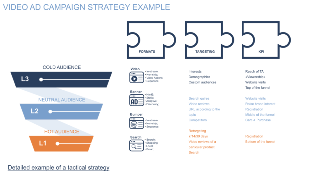 オーディエンスを分割し、セグメントごとに特定のフォーマットとターゲティングを選択し、ファネルの各レベルで独自の KPI を確立します。