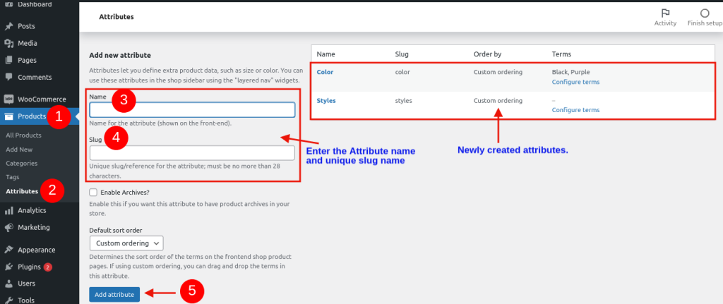 以下の手順に従って、WooCommerce ストアのすべての製品に適用されるグローバル属性を作成します。