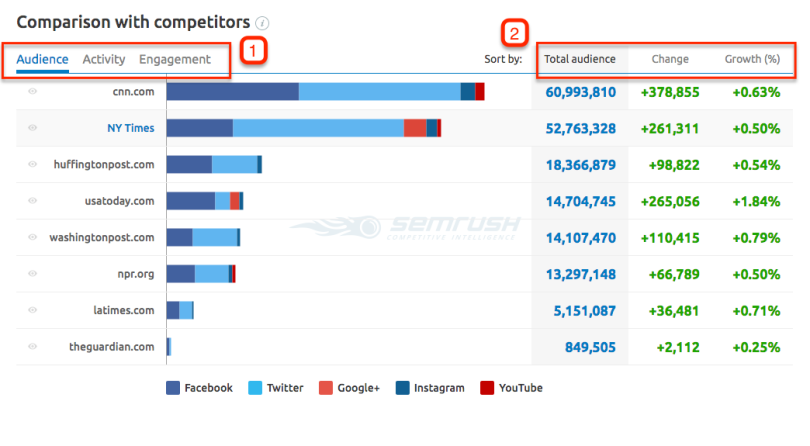 市場には複数の競合他社が存在するため、ソーシャル メディア レポート ツールを使用すると、コンテンツのパフォーマンスをベンチマークすることができます。 キャンペーンの統計をライバルと比較できます。 メリットの 1 つは、競合他社の中で自分の立ち位置を把握できることです。 ソーシャル メディア分析レポートは、時代を先取りし、ライバルより優位に立つのに役立ちます。