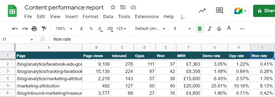 このデータが生成されたら、これらの数値を全体的なレポートドキュメントに入力し、MQLのリストに対して同じプロセスを繰り返します。