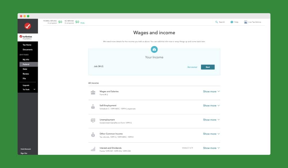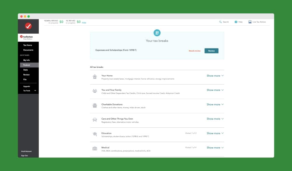 TurboTax は、控除と控除の各分野を通じて、資格のあるすべての税制優遇措置を確実に取得できるように支援します。 最大の経済的利益を得るために、時間をかけて各セクションを確認する価値があります。