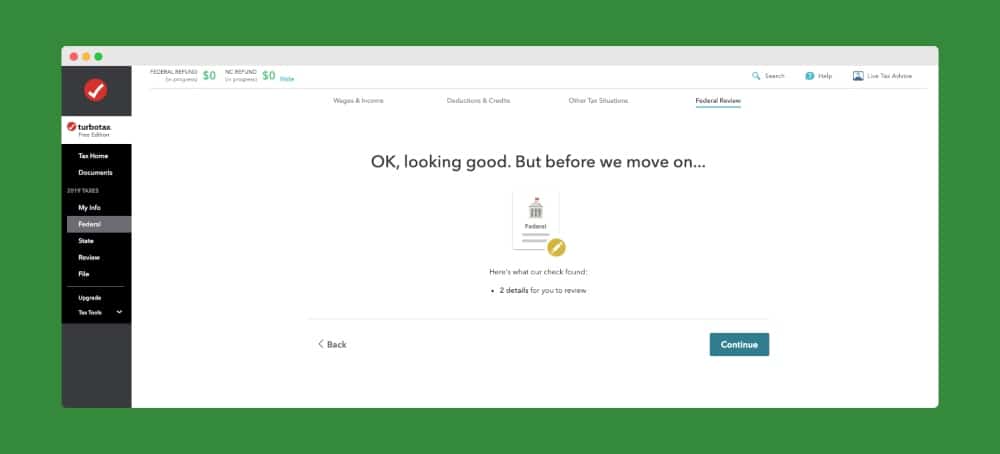 個人情報、収入、減税、およびその他の税務状況を入力したら、連邦申告書を確認します。