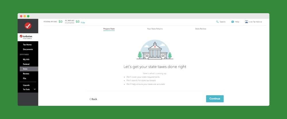 連邦申告書が完成し、レビューされたので、TurboTax は、連邦申告書情報を州申告書に取り込むオプションを提供します。 州への返品を完了するプロセスは、連邦と同じです。 このソフトウェアは、あなたの州に固有の所得および税控除を段階的に案内します。
